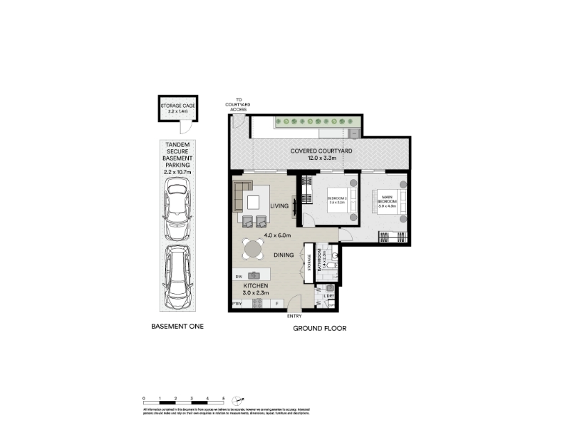 Secure tandem basement parking plus additional storage cage
